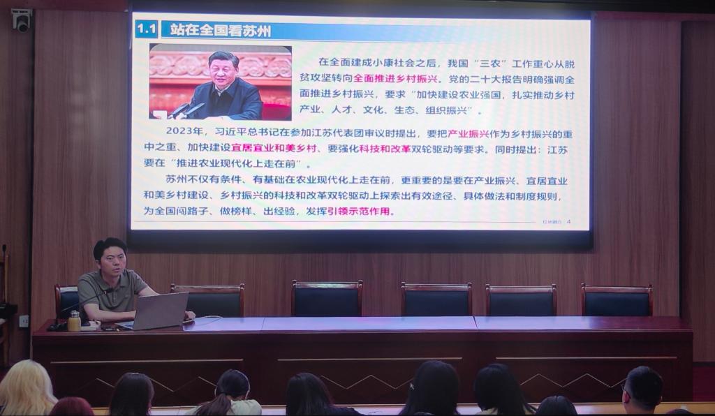 陈卫东以“推动社会主义文化繁荣兴盛”为主题,围绕 “四个自信”辩证关系、核心价值观长效培养、坚持人民中心创作导向和优秀传统文化时代创造四个议题,通过文化功能、时代需要、党的领导、创新发展的逻辑脉络,系统阐述了文化自信和文化自觉的战略作用与建设路径。莫军华则聚焦“文艺赋能乡村振兴”的时代命题,强调艺术要为苏州高质量发展提供强大“外脑”支撑,呼吁同学们在苏州文化宝库中学思践悟,将个人职业生涯规划写入乡村振兴的战略蓝图之中,积极应对“和美乡村”建设过程中的机遇与挑战。