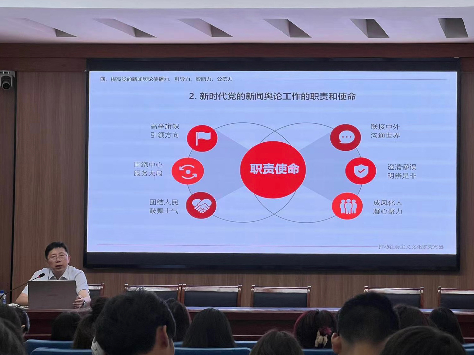 本次“形势与政策”的系列授课,旨在充分发挥信仰指引作用,突出课堂育人主渠道、主阵地定位,激励学生牢固树立服务文化事业与乡村振兴的思想自觉与行动自觉,在实现民族复兴的赛道上争为人先。