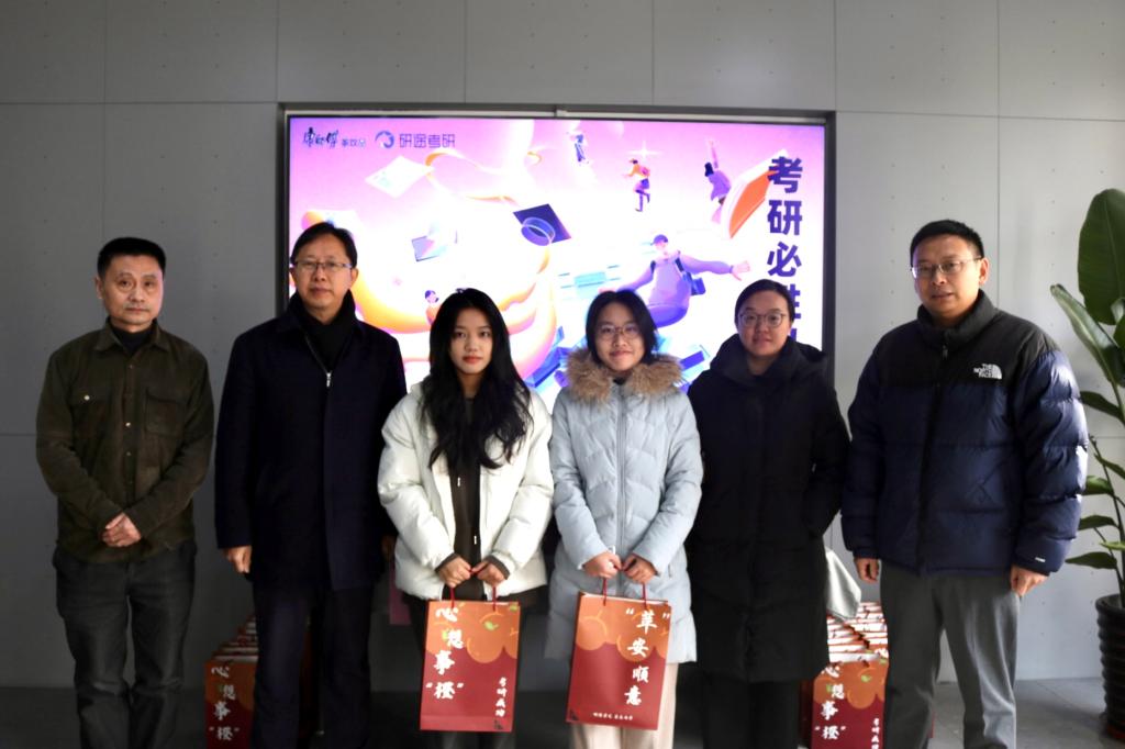 党委书记陈卫东,党委副书记兼副院长潘治、副院长狄野、院长助理华亦雄等为考生发放考研加油包,叮嘱同学们考前要注意调整作息、防寒保暖,以最佳身心状态参加考试。