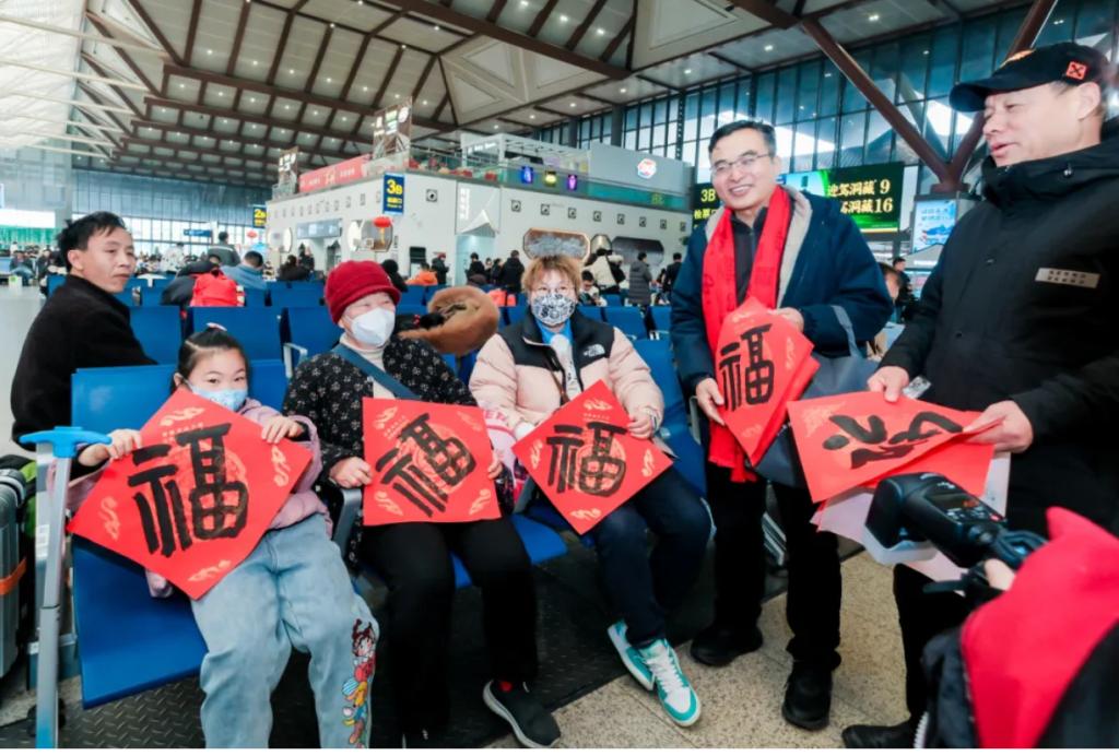 这一幅幅象征新春好运的“福”字,不仅装点了旅途的风景,更是连接人与人之间的温情纽带。这些手写的“福”字深受大家的喜爱,拿到的旅客细细地欣赏,绽放出喜悦的笑脸,并将这个“祝福”拍照分享给自己的家人朋友。
