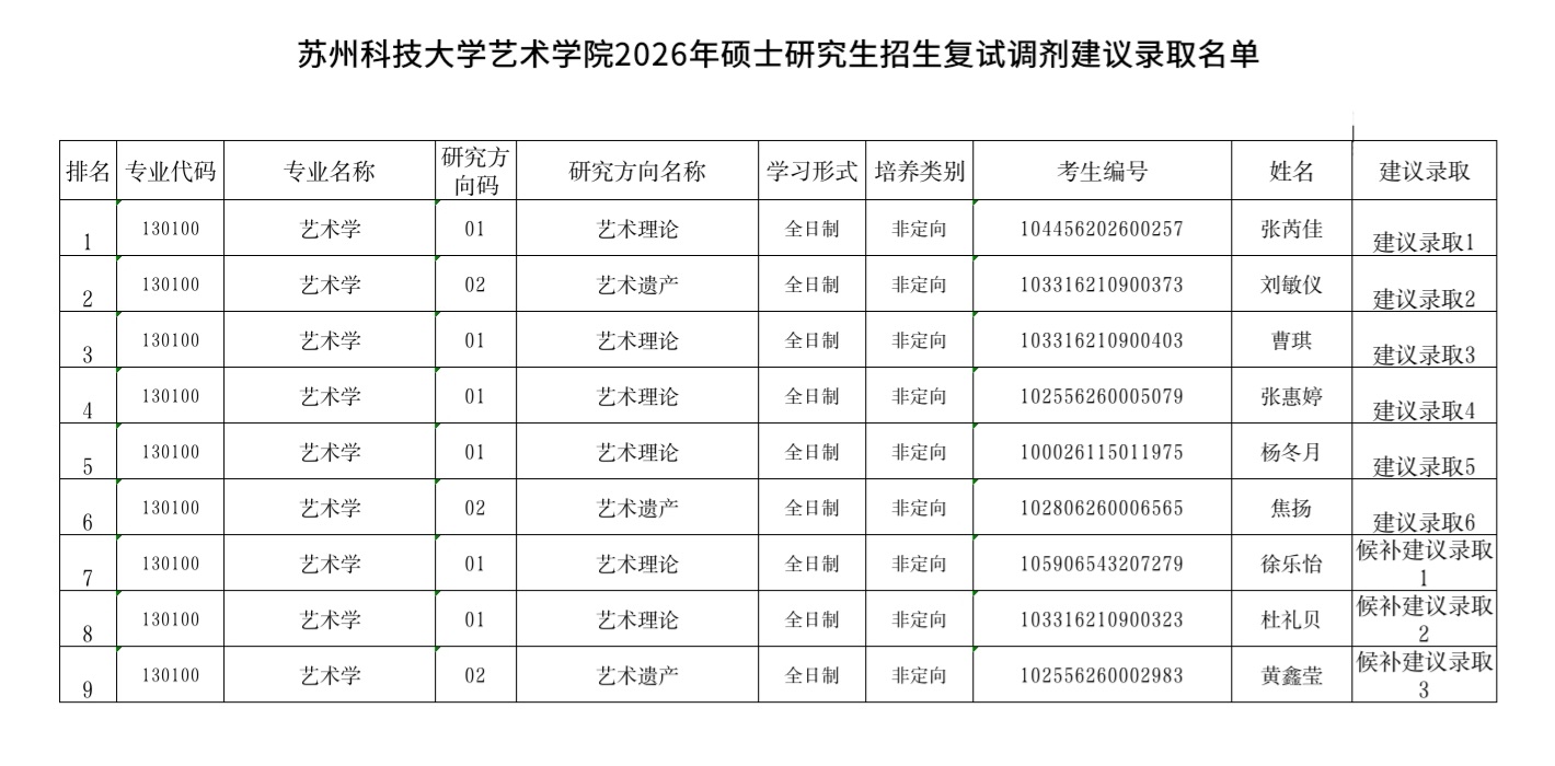 球速体育官网 2026年硕士研究生招生复试调剂建议录取名单