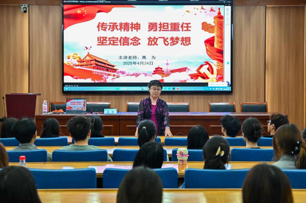 高为老师结合理论与实践,对新时代学生党员的初心信仰与使命担当进行了深刻解读。她从“伟大建党精神是中国共产党的精神之源”切入,通过影像资料与历史案例,深入阐释红色精神的深刻内涵。她提到,大学生应从红色精神中汲取力量,坚定理想信念,坚守入党初心,将个人理想融入国家发展中,将自我革新落实到行动中。