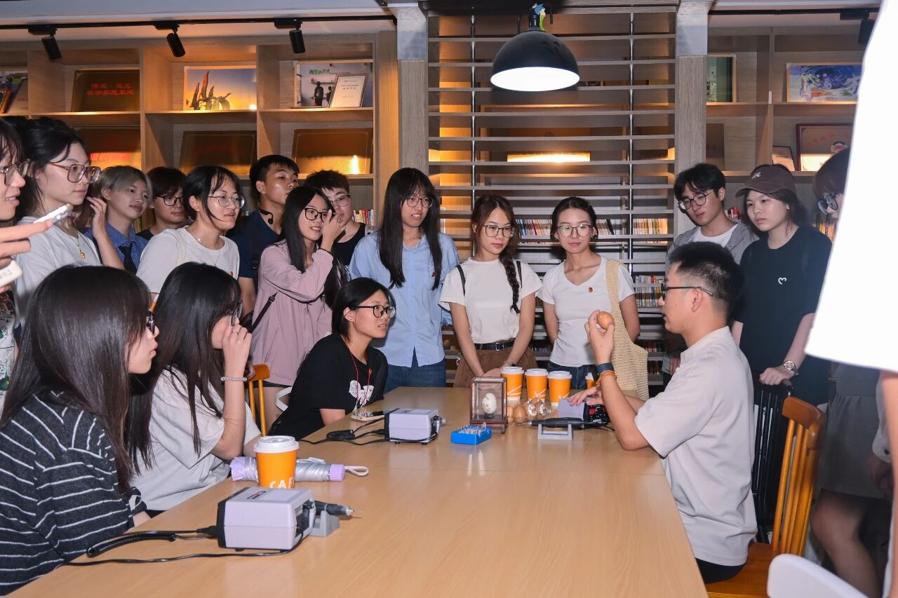 同学们在了解双创生态的同时,更从赖秀改学长“毫米之间见真功”的坚守中感受初心与匠心的分量,真正体验到蛋雕非遗的传承魅力,为他们在未来更好解答“艺术何为、青年何为”的时代之问奠定了基础。